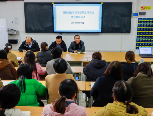 为深入贯彻落实国家对创新创业教育的重视精神,提升教师教学素养,2024年11月19日下午,建筑工程学院联合创新创业学院在开封校区北院F106进行集体教研活动。创新创业学院院长张何琳、副院长张青、科长陈沛、大赛指导专家蔡松等一行来到建筑工程学院,同建筑工程学院全体教师共同研讨。此次活动通过交流与合作,共同研讨中国国际大学生创新大赛,提高师生参赛的积极性。指导专家蔡松,为建筑工程学院的教师们带来了一场关于“大学生创新大赛备赛策略与技巧”的专题讲座。蔡松老师以其丰富的指导经验和独到的见解,为教师们详细讲解了创新大赛的备赛流程,每一个环节都进行了深入的剖析,提供了一系列实用的备赛建议。