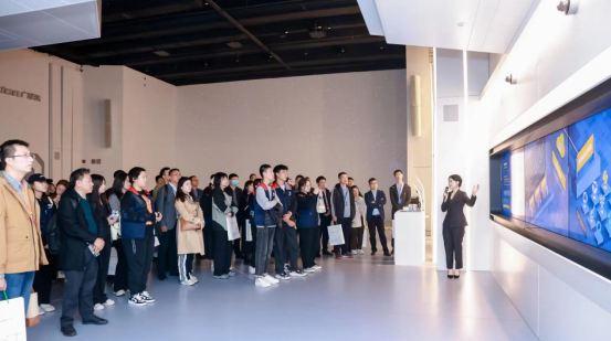 广联达科技股份有限公司作为国内领先的数字建筑平台服务商,秉承“数字建筑”理念,聚焦运用BIM和大数据、物联网、移动互联网、行业AI等数字技术助力建筑产业转型升级。张虎一行参观了广联达数字建筑体验馆,了解了广联达公司发展历程、业务布局,听取了广联达在数字设计、智能建造、CIM等方面的创新实践以及北京市大兴国际机场、陕西建工集团、重庆市广阳岛智慧生态等典型案例建设中取得的成效。结合全息影像、裸眼3D技术,讲解员介绍了智能建造和数字化技术在广联达西安办公大楼从设计、施工到运维管理的全过程应用情况。最后,大家体验了广联达自主打造的“数字化教学空间”,通过科技感的教学环境,以数字化安全管理为案例模拟工作坊实习场景,与广联达工作人员就工作坊学习内容、产品学习、专业能力测评模型等内容开展深入交流。