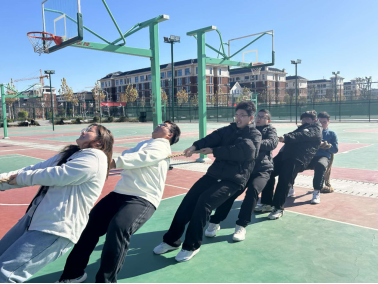拔河比赛现场更是紧张刺激。双方队员紧紧握住绳子,脚蹬地面,身体后倾,大家毫不退缩,凭借着顽强的毅力和强大的团队凝聚力,最终一举夺冠。