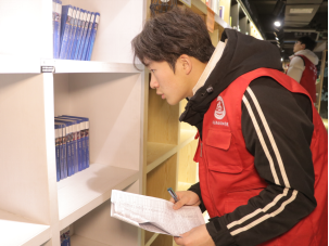 活动当天,志愿者们早早来到图书馆,接受了基础的培训后,便迅速投入到各自的岗位中。有的在书架间整理书籍;有的则在阅读区为读者提供引导和帮助。在书架间,志愿者们仔细地整理书籍,确保每一本书都能被准确地归位,方便读者查找。在借阅处,志愿者们耐心地解答读者的问题,帮助他们快速找到所需的书籍。在阅读区,志愿者们认真整理桌面卫生,为读者营造一个舒适的阅读环境。