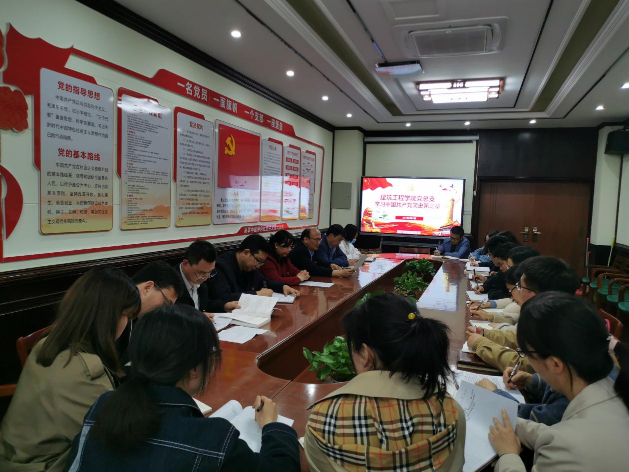 根据学校《党史学习教育实施方案》要求,推动我院全体教师深入开展党史学习教育,2021年4月20日下午,建筑工程学院党总支组织全体教师在E316党员活动室,集中学习《中国共产党简史》第三章内容《为什么说中国共产党在抗战中发挥了中流砥柱的作用》,东校区的教师通过网络视频参加学习会议。会议由建筑工程学院党总支书记马春燕主持。