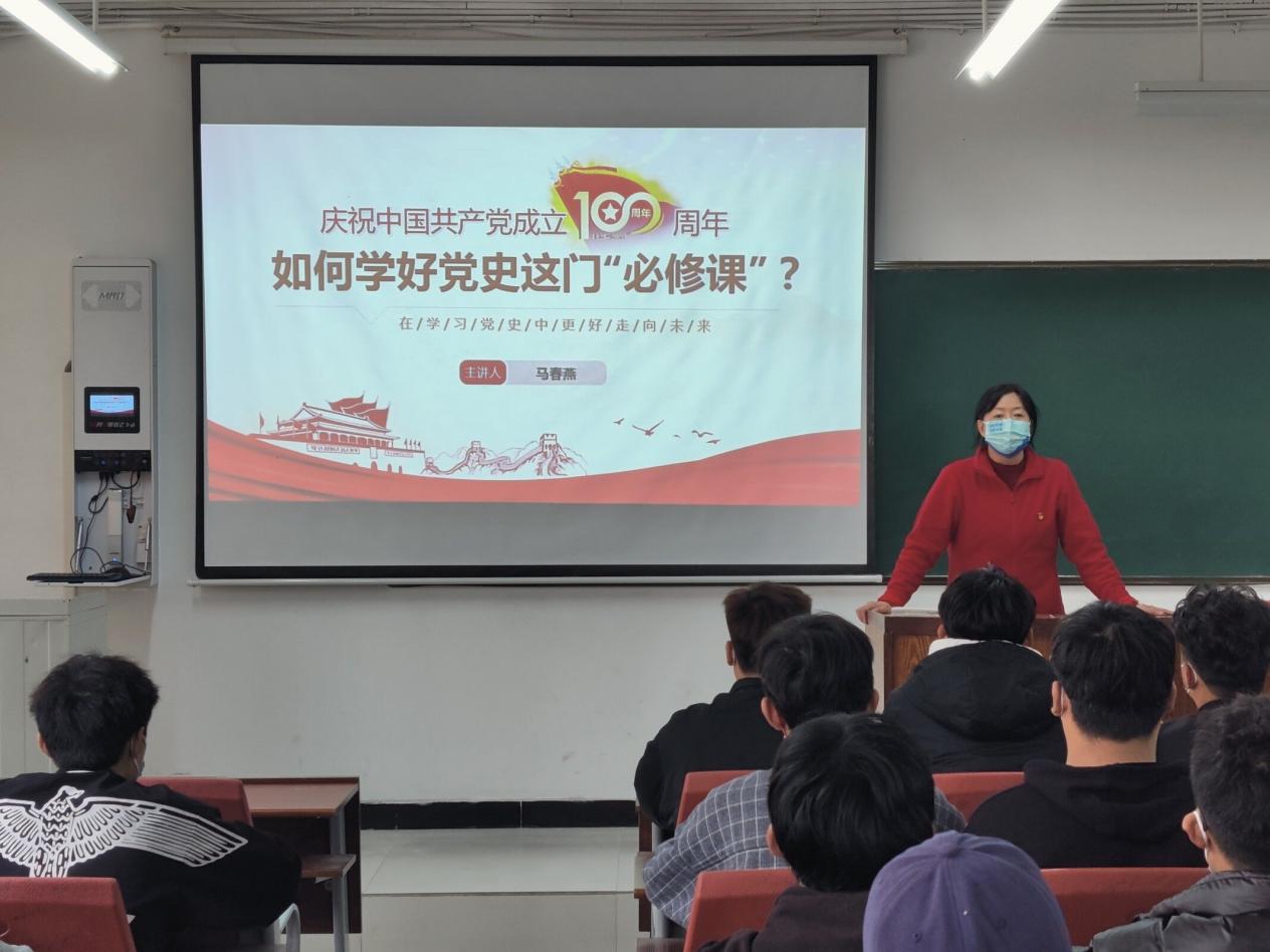 看完视频,马春燕与大家进行了交流,并向大家解读了中国共产党百年奋斗的光辉历程和历史性贡献,深刻阐述了中国共产党为什么“能”,倡导大家要铭记党的光辉历史,走好新时代长征路。最后,马春燕根据疫情情况要求大家一定做好个人防护,非必要不外出,严格遵守学校疫情防控要求,不给学校添负担。