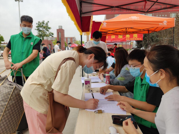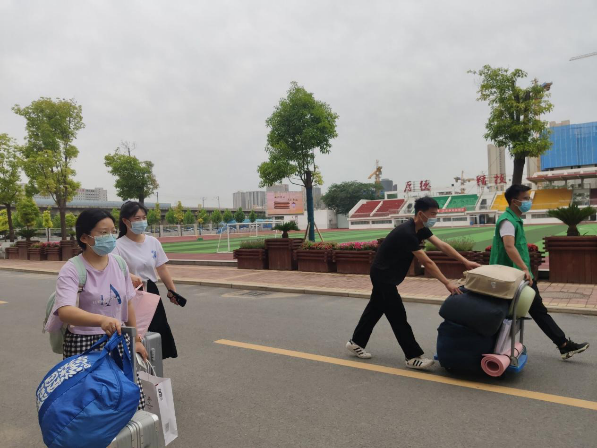 学生返校前,学院高度重视,精准掌握每一名学生的动态,并为学生全方位提供生活保障,确保学生返校备考。早上7:00,学院工作人员提前到岗,引导返校学生有序排队、核验身份、测量体温、行李消杀,确保学生安全高效入校,避免出现聚集现象。