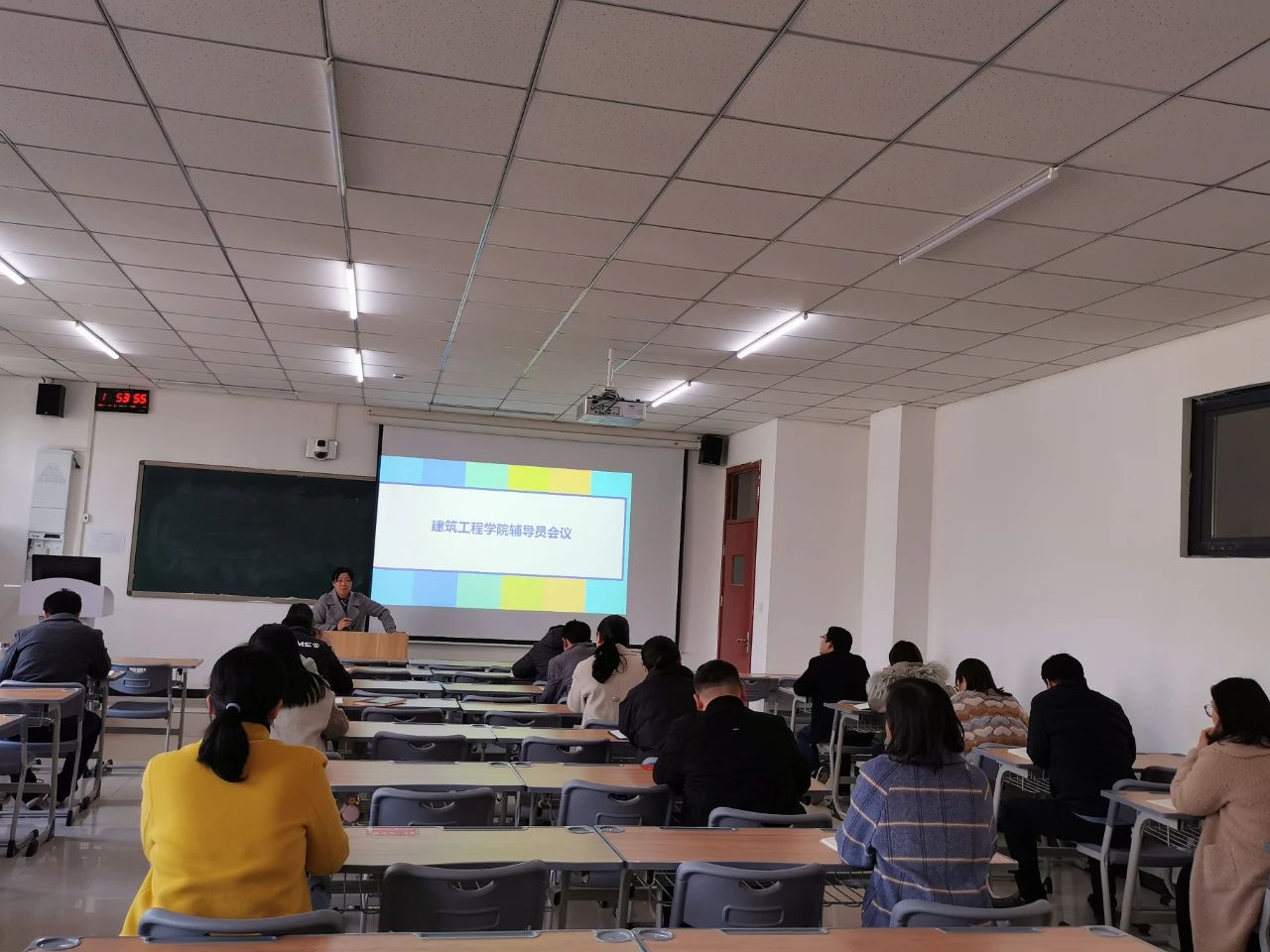 接着,马书记对学生日常管理工作向大家进行了强调,包括钉钉打卡、宿舍安全、双创竞赛、18级毕业环节注意事项,以及各班级家庭收入低、学业困难学生数据库建立等问题。在建党100周年纪念活动为契机,马书记要求辅导员要扎实开展学生党史学习、社会实践、志愿服务等丰富多彩的班级活动,引导学生自觉培养家国情怀,促进学生身心全面发展,增强班级凝聚力,展现建工学子团结一心,勇往直前的精神面貌。