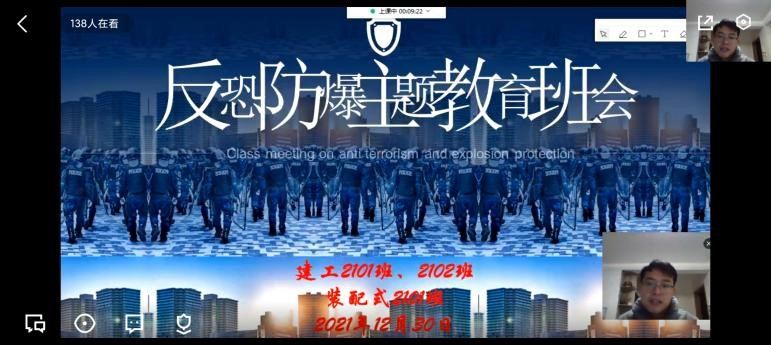 为深入贯彻落实习近平总书记关于反恐怖工作的重要指示精神,进一步推进反恐怖宣传教育进校园,教育学生树立安全意识,提高全体学生的安全防范意识和突发事件的应变能力。2021年12月28日至2022年1月6日,建筑工程学院组织各班级开展“全民反恐,共创平安”主题班会。